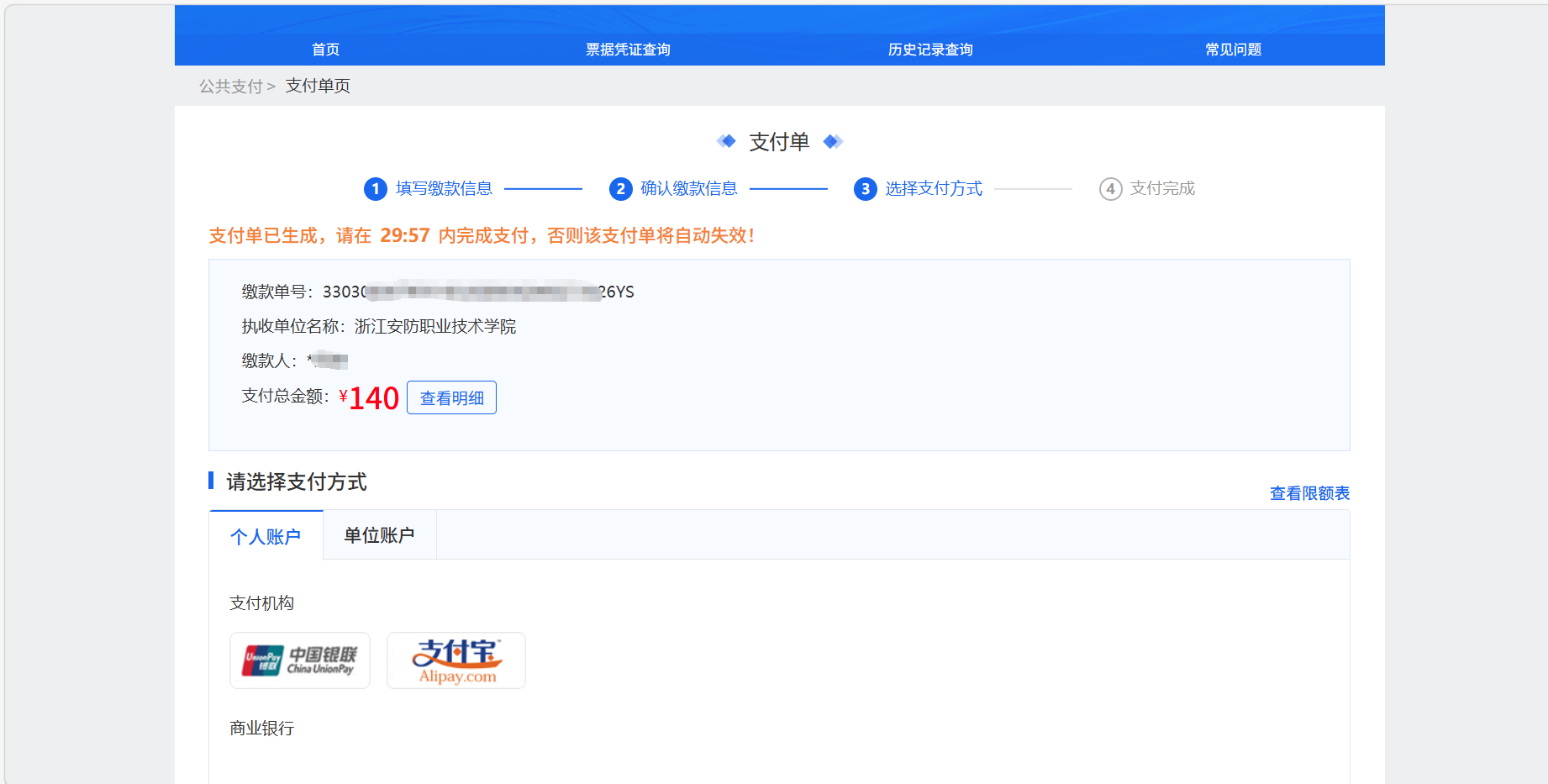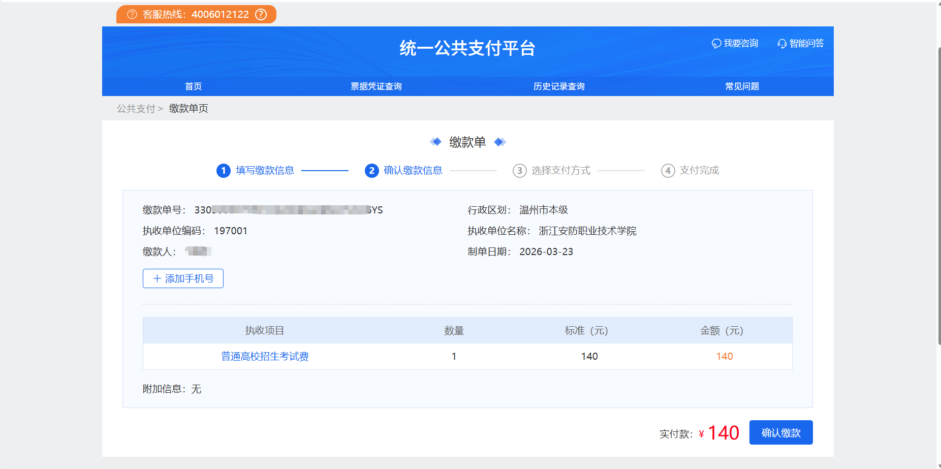 二、缴纳报名费(140元/人)