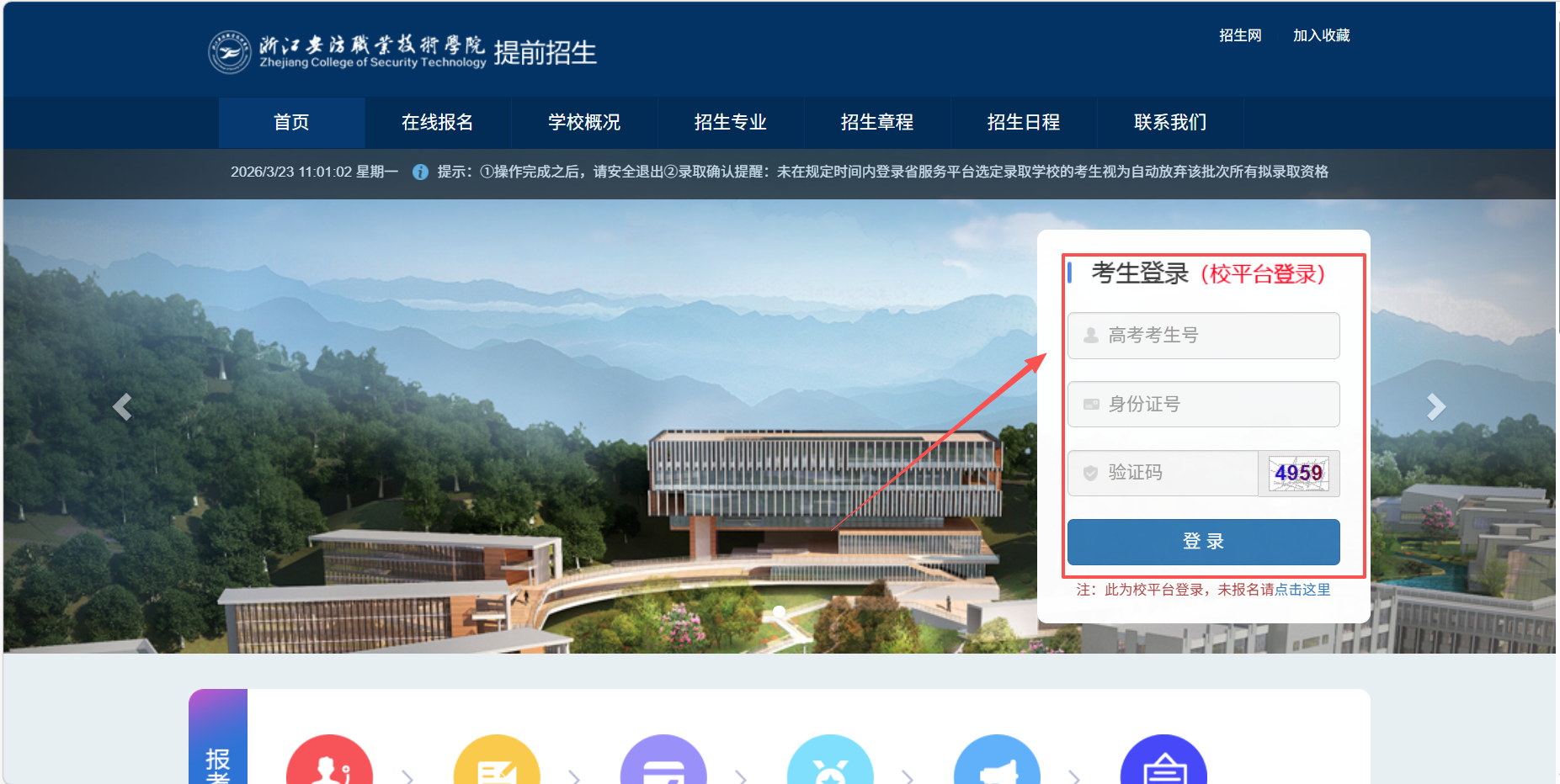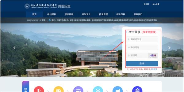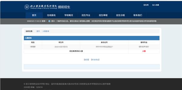 考生可于2026年3月23日起登录我校招生网(https://zs.zjcst.edu.cn/)查询,也可前往学校官网(https://www.zjcst.edu.cn/)点击浮窗链接,或关注浙江安防职业技术学院招生办微信公众号,具体操作方法如下:
